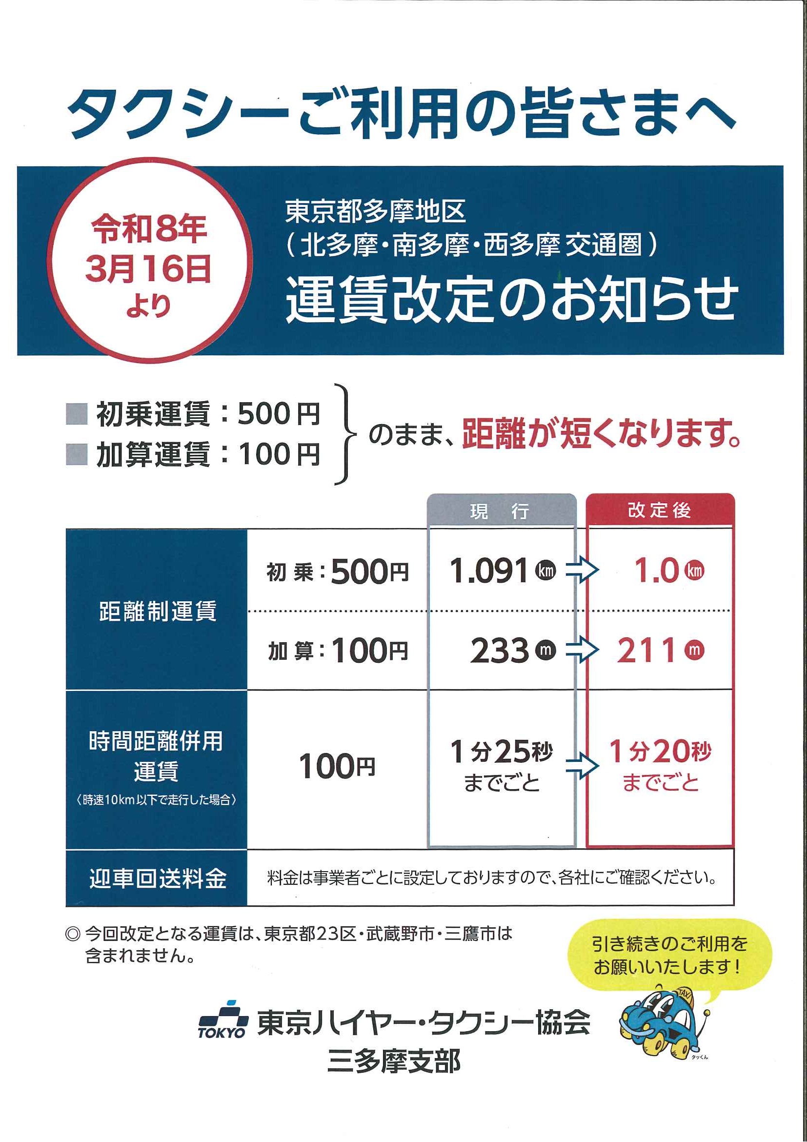 2026年3月16日より運賃を改定いたします。